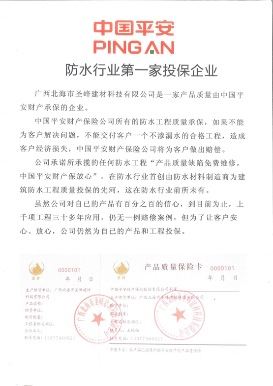 公司拥有完善的产品质量控制体系,对产品从生产、出厂、运输、搅拌及施工全程跟踪服务,并且由平安保险提供质量承保(单一项目保额1000万元人民币),公司提供终生免费保修服务。
