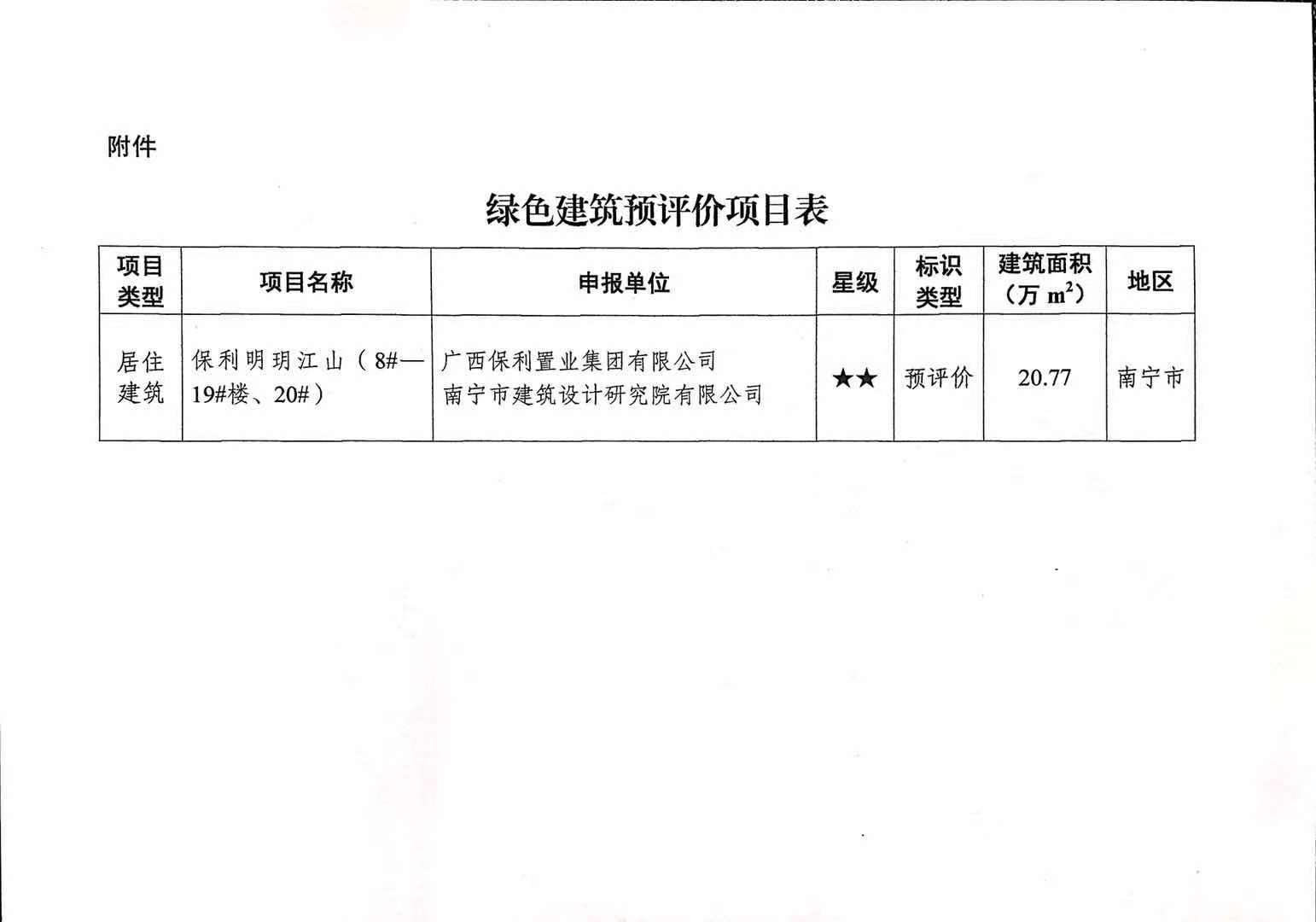 关于保利明玥江山项目绿色建筑预评价的公示